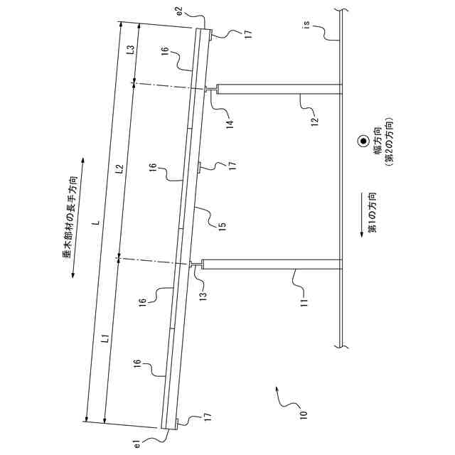 前記垂木部材の前記長手方向の全長をL、前記垂木部材の前記長手方向において第1の端から前記第2の桁部材より該第1の端側に位置する前記第1の桁部材までの部分の前記長手方向における長さをL1、前記垂木部材の前記第1の桁部材及び前記第2の桁部材に挟まれる部分の前記長手方向に沿った長さをL2、前記垂木部材の前記長手方向における第2の端から前記第2の桁部材までの部分の前記長手方向における長さをL3として、L/4<L1、0<L3、且つL1<L2を満たす。