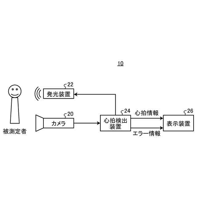 非接触で被測定者の心拍を検出する方法として、カメラにより撮像された画像を用いる方法が知られている。カメラにより撮像された画像から心拍を検出する方法は、カメラを用いるので取り扱いが容易であるという利点がある。しかし、カメラにより撮像された画像を用いた心拍の検出方法は、光外乱に弱く、心拍検出の原理から検出信号が非常に微弱であり、精度を高くすることが困難であった。