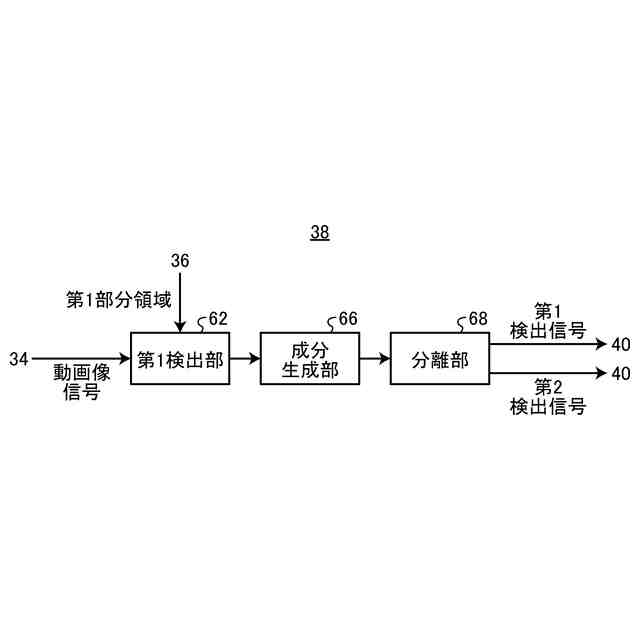 前記RGB信号を構成する3個の成分または前記HSV信号の色相信号を構成する3個の成分のうちの第1成分に基づく信号を前記第1検出信号として出力し、前記RGB信号または前記HSV信号を構成する3個の成分のうちの前記第1成分とは異なる第2成分に基づく信号を前記第2検出信号として出力する分離部と、