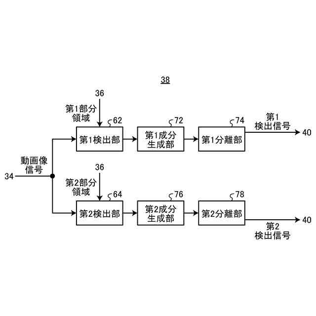 前記動画像信号から、前記肌露出領域における前記第1部分領域よりも前記心拍成分を検出しにくい第2部分領域の信号成分を検出し、前記第2部分領域の信号成分を前記第2検出信号として出力する第2検出部と、