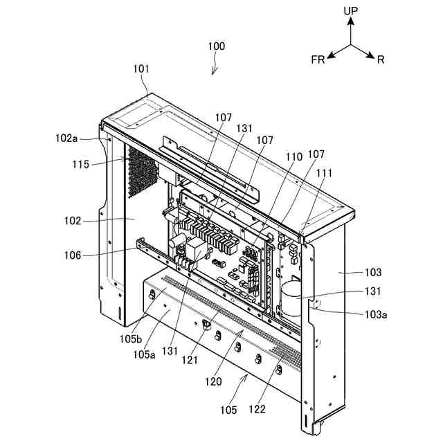発明者らが本開示に想到するに至った当時、電装箱に空気吸気口と空気排出口を設け、ファンにより空気を吸入することで気流を生じさせ、気流との接触により基板及び電子部品を冷却するという技術があった。しかしながら、従来の技術では、空気吸気口より吸い込まれた埃や糸くずが、電装箱内の電子部品に絡まることで、電子部品がショートする恐れがあると言う課題を発明者らは発見し、その課題を解決するために、本開示の主題を構成するに至った。
