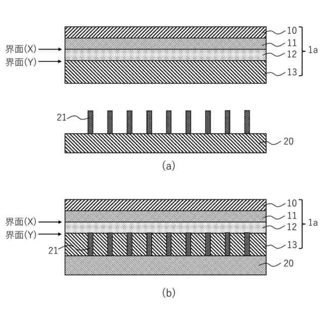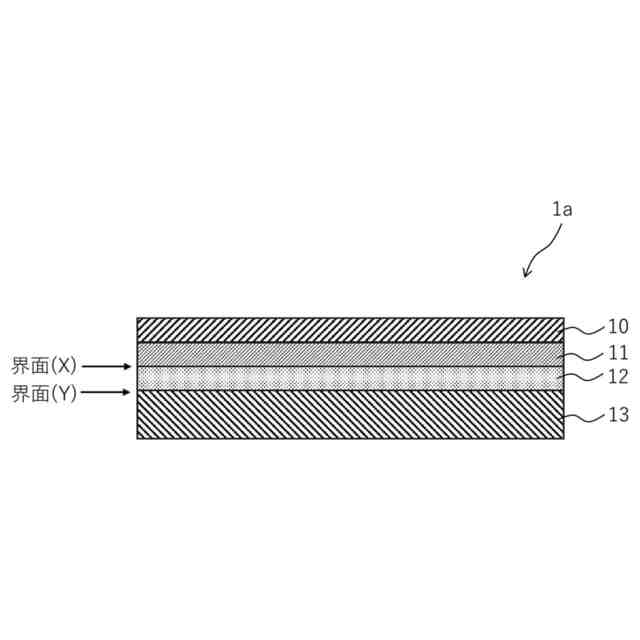 前記粘着剤層と前記金属焼成材層とが直接接触する界面(X)と、