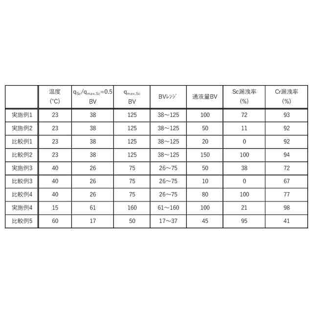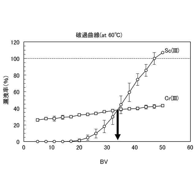 【解決手段】本発明は、スカンジウムとクロムを含む不純物とを含有する酸性溶液を、イミノジ酢酸型キレート樹脂を充填したカラムに通液してスカンジウムをキレート樹脂に吸着させるイオン交換処理工程を含み、イオン交換処理工程では、酸性溶液を15℃~45℃の範囲にして通液し、キレート樹脂へのスカンジウムの吸着量をq