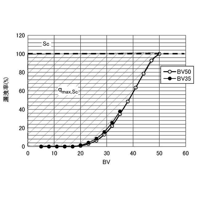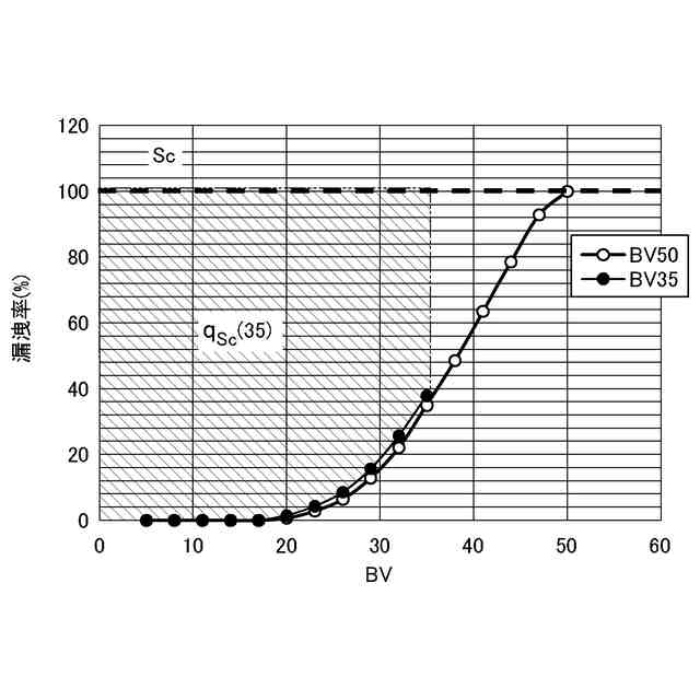 となる前記酸性溶液の通液量BVの値を上限値として、