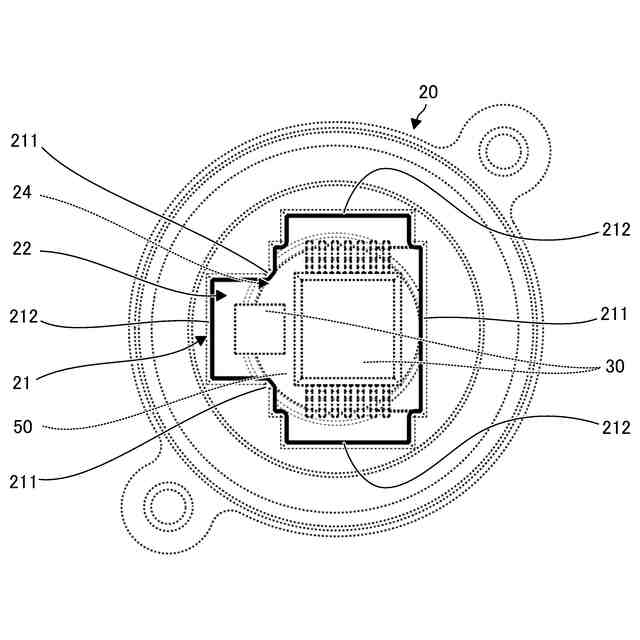 前記内壁が前記本体部分から後退した部分に対向する前記1つの端辺に、前記収容部の後退した前記内壁へと向かって延びるリードを有している、