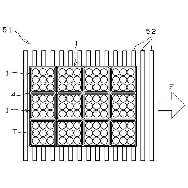 例えば、ローラハースキルンでは、部品や粉末などの熱処理対象物を収容して高温で熱処理するための熱処理容器が用いられている。ローラハースキルンは、例えば、全長が予熱部、焼成部、冷却部で構成されており、複数の熱処理容器が一方向に連続的に搬送される。搬送時には、生産性向上のために多くの製品を焼成部に収容すべく、熱処理容器が搬送方向および搬送方向に直交する方向に整列され、容器同士は相互に密着した状態で搬送される。