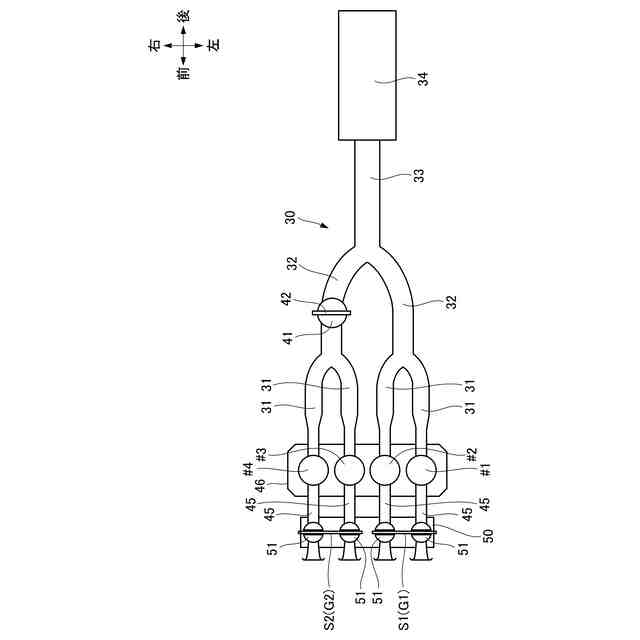 前記排気装置(30)は、前記気筒(♯1,♯2,♯3,♯4)毎に設けられる排気管(31)と、マフラ(34)の上流側で前記排気管(31)が少なくとも1回集合してなる集合管(32)とを有し、