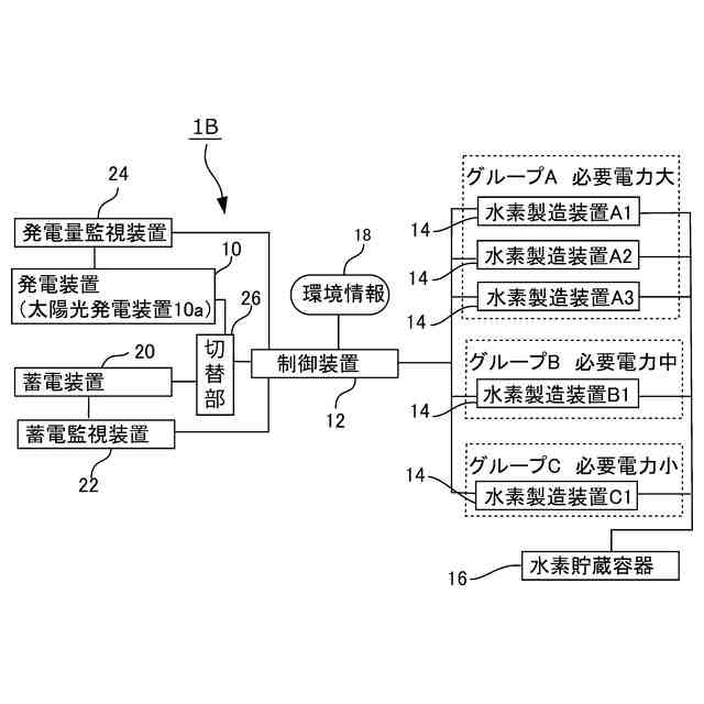 そこで、発電量に応じて水素製造装置を稼働することが試みられているが、この場合、太陽光発電や風力発電では発電量の変動が大きいため、水素製造装置を発電量の最大値に合わせて設置した場合、天候によって発電能力が低下した際、水素製造装置の稼働率が大きく低下する。すなわち、従来技術においては、水素製造装置を効率よく稼働させることができないという問題点がある。