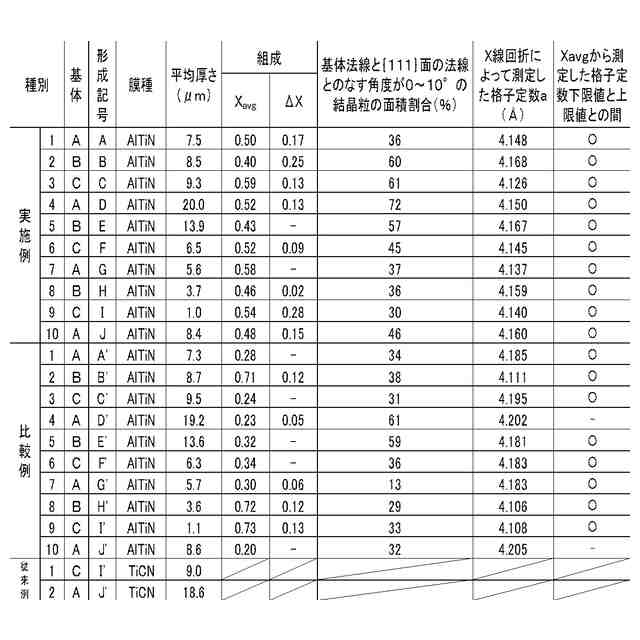 さらに、例えば、特許文献3には、JCPDS記載の格子定数に対し、0.997~1.005倍の格子定数を有し、厚さが0.01~50μmである気相合成法によって基材表面に形成された金属窒化物からなる硬質被膜を有する被覆工具が記載され、該被覆工具は耐摩耗性に優れるとされている。