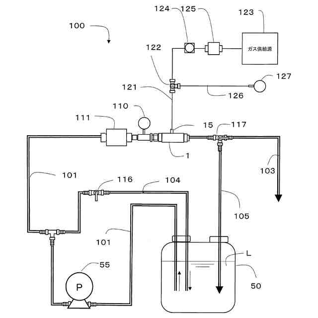 (1)ねじ部材に液体流が衝突する際の背圧がガス導入孔に強く作用するため、ガスを自吸することが全くできない。実際、特許文献3に開示されている炭酸ガス溶解試験においては、送液圧(0.1MPa)よりも高い圧力(0.2MPa)にてガス導入孔に炭酸ガスを強制圧入している。よって、ガス圧送のためのボンベやポンプが不可欠となり、使用形態が限定される問題がある。