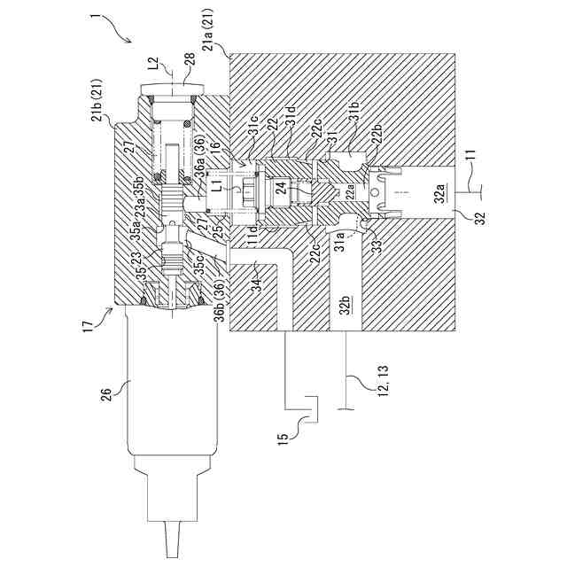 液圧ショベル等の建設機械では、ブームシリンダ等の液圧アクチュエータに対する作動液の流れを制御すべく流量制御弁を備えている。流量制御弁は、主にスプール弁で構成されているが、特許文献1の流量制御弁のようなポペット弁装置が採用されることが考えられている。他方、特許文献1の流量制御弁のようなポペット弁装置では、入口側流路の液圧と出口側流路の液圧との差圧が大きくなると、背圧が変動しやすく、流量に関する制御性が低下する。