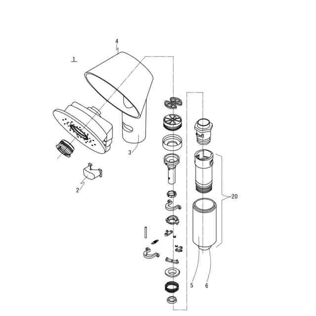 上記特許文献に係るシャワーヘッドは、一体として構成されているが、近年、上側部分と下側部分を取り外し可能なシャワーヘッドが流通している。しかし、当該上側部分と、当該下側部分を着脱するたびに、着脱付近の部品が損傷する場合がある。