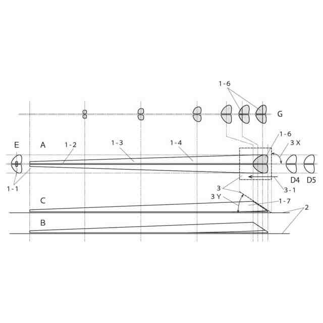 上記D形の曲線部は、D形の曲線部頂点1-8を下げ、曲線部が直線部の下端より直線部の長さの1/10~2/10程度下がるように変形した(以下「変形D形」という)箸であって、