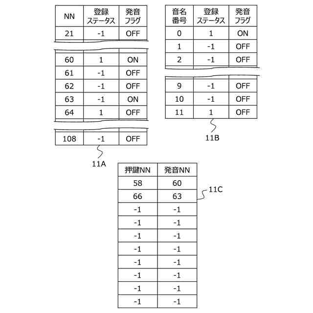 本開示の一実施形態において情報処理装置のバッファに登録される候補音高の情報の一例を示す図である。