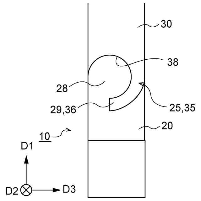 他の変形例の車体構造部材の結合構造を第2の方向に沿って見た模式図である。
