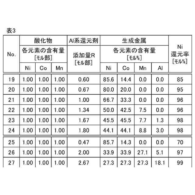 また、乾式処理により得られる金属は、Ni、Coなどの有価元素のほかに、不純物元素を含む場合がある。不純物元素としては、廃リチウムイオン電池に由来する銅(Cu)および鉄(Fe)が挙げられる。