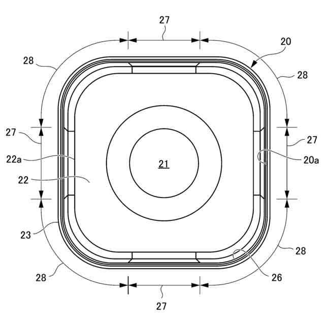 前記容器本体の断面矩形状は、4つの辺を構成する4つの直線部と、4つの角部を構成する4つの湾曲線部とを有し、