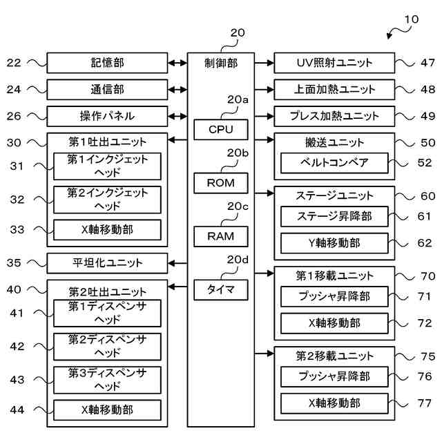前記制御部は、前記有効時間外となる場合において、次の前記塗布処理の前に、前記印刷処理および前記硬化処理を含む、前記塗布処理以外の他の処理が実行される場合には、前記他の処理の実行中に前記パージを実行するように、前記ディスペンサヘッドを制御する、