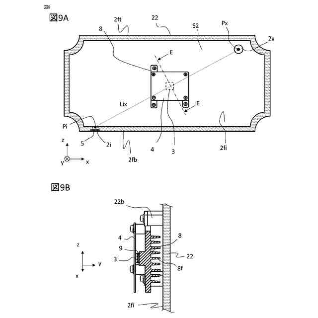 図9Aと図9Bは、それぞれ実施の形態3の変形例にかかる電子機器の構成を説明するための正面視での断面図と、電子部品部分の斜め上方側面視での断面図である。