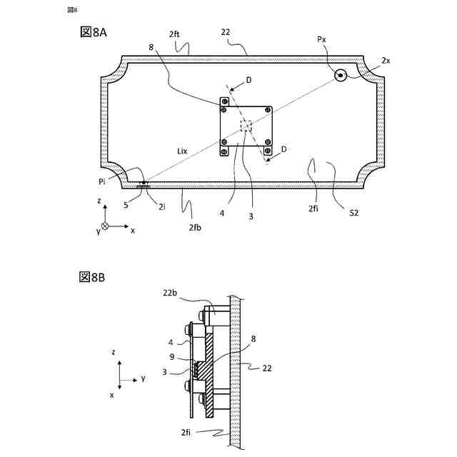 図8Aと図8Bは、それぞれ実施の形態3にかかる電子機器の構成を説明するための正面視での断面図と、電子部品部分の斜め上方側面視での断面図である。