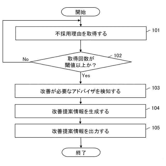 改善が必要であると検知されたアドバイザに、当該アドバイザに関連する不採用理由の解消を図る対処内容を提案する情報を改善提案情報として出力する。