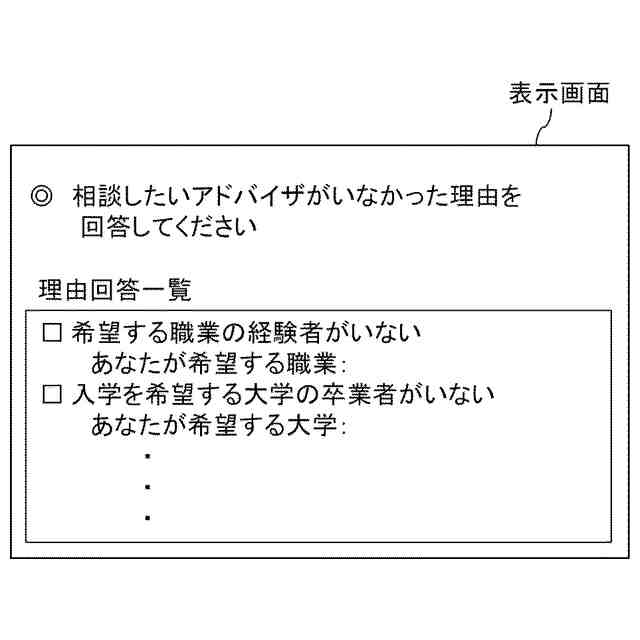 相談相手候補である複数のアドバイザの中から相談相手として選択したいアドバイザがいなかった相談者から、選択したいアドバイザがいなかった理由を不成立理由情報として取得し、