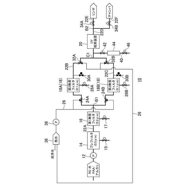 【課題】無菌フィルタを用いた無菌水製造システムにおいて、連続的に無菌水の製造を可能にする。