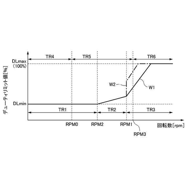 前記上限値設定部は、前記回転数が、前記第1閾値より低い第2閾値から前記第1閾値までの間において、前記第1上限値を、前記回転数の増加に応じて徐々に上昇するように設定する