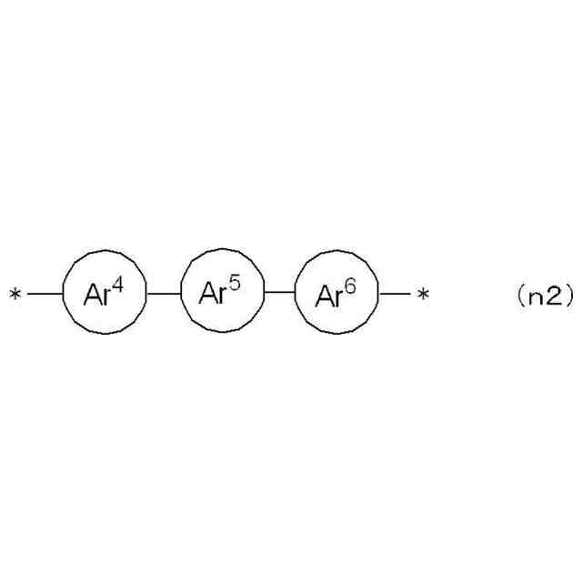 はそれぞれ独立に、電子求引性の1価の基であり、Pは下記式(n2)で示される構造を有する2価の基である。)