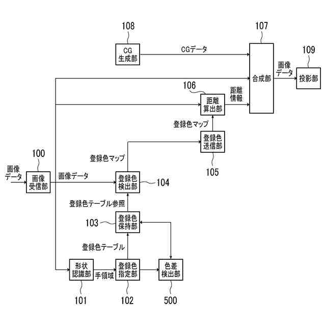 撮像画像から、手などの被写体領域を抽出する手法としては、予め登録された色情報(例えば肌色情報)に基づいて、撮像画像から肌色領域を抽出するような手法が知られている。また、色情報を登録する手法としては、撮像画像からGUI等を用いた手作業により指定された領域の色情報を抽出して登録する手法や、画像認識処理を用いて撮像画像から検出した領域の色情報を登録する手法などが知られている。その他、特許文献1には、特定の人物の撮像画像から形状認識により検出した顔の領域の色を基準色として登録し、同じ画像から形状認識により検出した複数の手の領域の色と基準色とを比較することで、その人物の手の領域を特定する技術が開示されている。特に、特許文献1に記載の技術では、撮像された直近(最新)の複数枚(例えば5フレーム分)の画像を用いて基準色が取得されている。