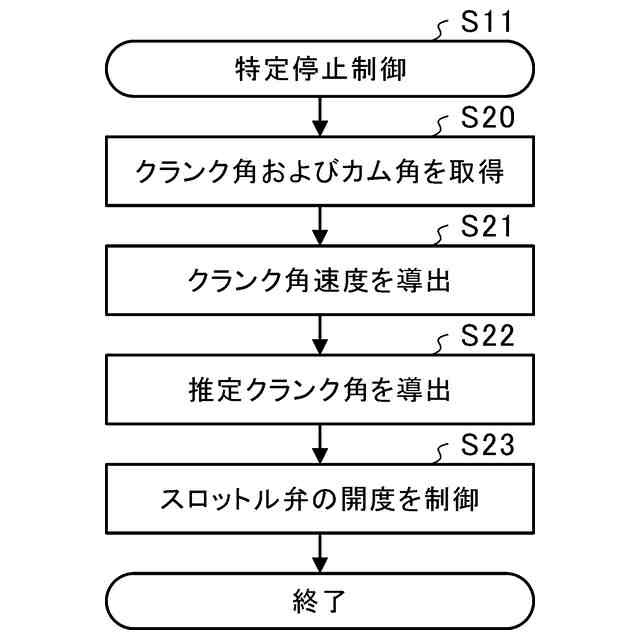 前記推定クランク角が、前記特定クランク角範囲よりも前記クランク角が小さい方向に外れている場合、前記スロットル弁の開度を、現在の開度よりも大きくすることと、