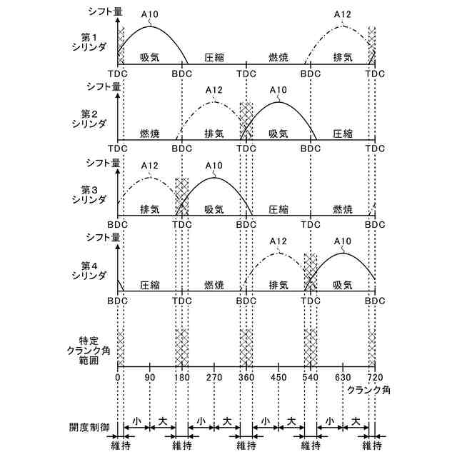 図4は、バルブオーバーラップ状態、特定クランク角範囲およびスロットル弁の開度制御について説明する図である。