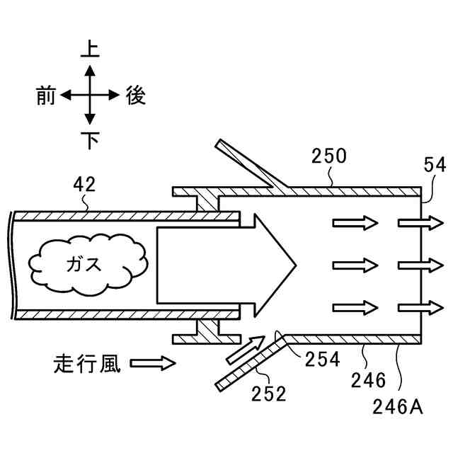 前記通風部は、前記排気流路に設けられ、走行風を取得することにより前記排気流路に気体の流れを発生させる走行風取得部を含み、