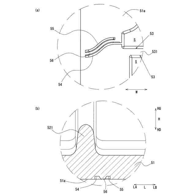 前記第二溝部における前記幅方向の中央側端部は、前記第一溝部における前記幅方向の中央側端部よりも、前記幅方向の端部側に配置された