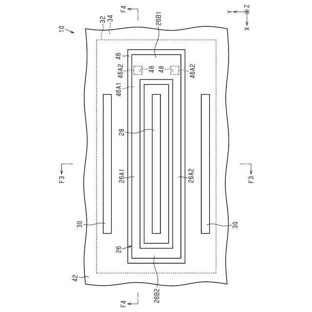 図2は、図1に示した絶縁層の下方に位置する窒化物半導体装置の構成要素を示す概略平面図である。
