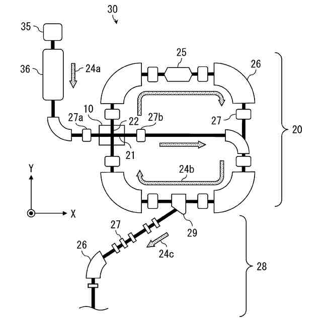 近年、円形加速器の小型化がすすみ、従来では円形加速器の内側に配置していたイオン源及び線形加速器を、その外側に配置せざるを得なくなってきた。このため機器配置の都合上、円形加速器とビーム輸送系を立体交差させる必要性が生じる場合がある。そうすると、ビーム輸送系を通過する荷電粒子のビーム軌道を曲げるため、追加の偏向電磁石を真空ダクトに設けることが必須となってしまう。