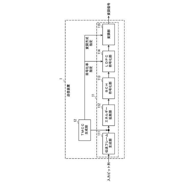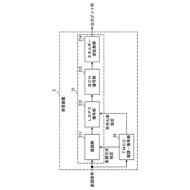 LDPC符号は符号長を大きくし、適切な検査行列を用いることによりシャノン限界に迫る伝送特性が得られる強力な誤り訂正符号であり、新4K8K衛星放送の伝送方式を規定するARIB STD-B44(以下、高度衛星放送方式と呼ぶ。例えば、非特許文献2参照)においてもLDPC符号が採用されている。多値変調とLDPC符号をはじめとする強力な誤り訂正符号を組み合わせることで、より高い周波数利用効率の伝送が可能となってきている。
