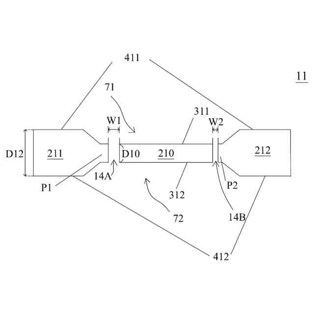 前記主振動領域とそこに隣接する前記第1隣接領域又は前記第2隣接領域の間には少なくとも1つのエッチング除去(CUT-OFF)領域が形成されることにより、前記主振動領域とその両側に位置する前記第1隣接領域又は前記第2隣接領域は切り離される(separate)。