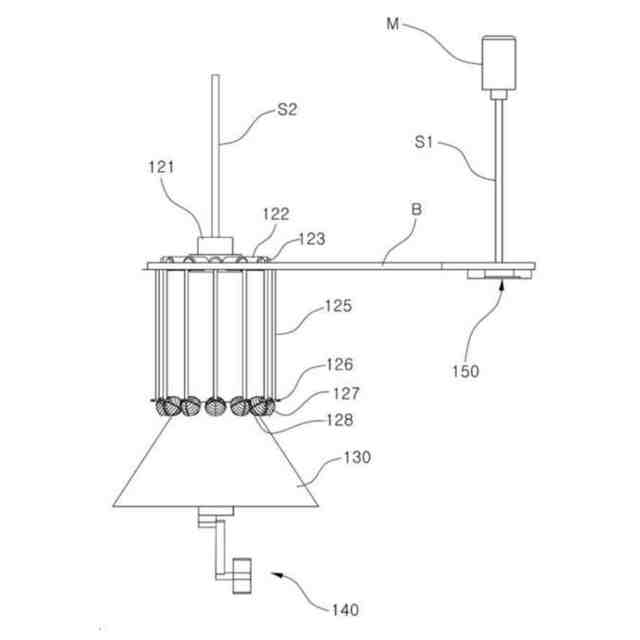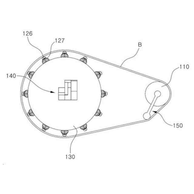 前記回転プレートから延びるが、前記回転プレートと同一平面上に位置され、長さが可変して端部に前記チェーン部が引っ掛かる複数の回転シャフト;