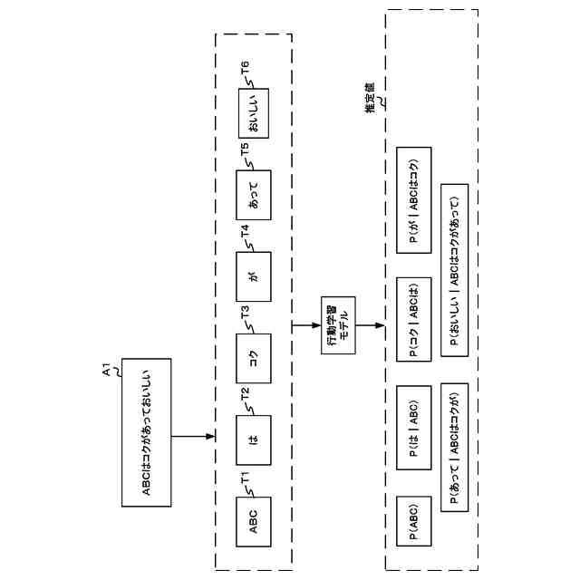 前記記憶部は、事前学習された汎用言語モデルである汎用学習モデルであって、行動情報を入力として、推定値を出力するよう構成された汎用学習モデルをさらに記憶し、