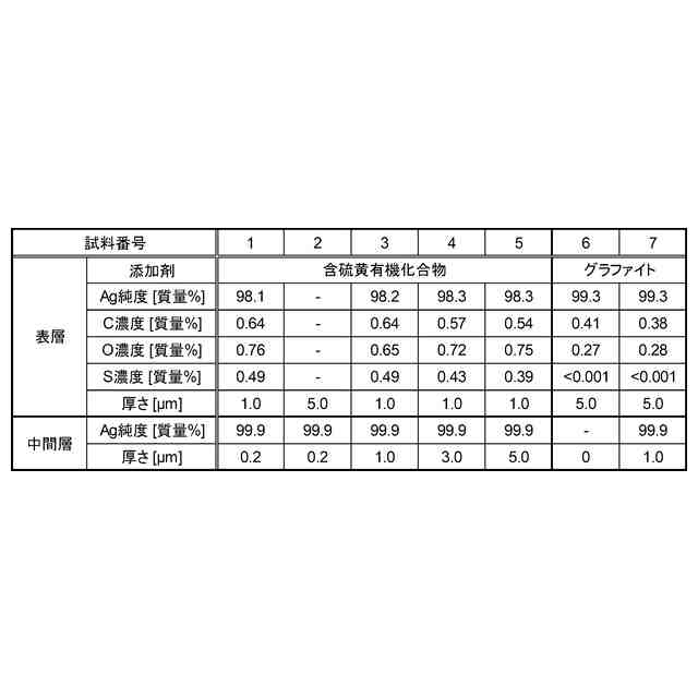 Agと、含硫黄有機化合物および炭素材料の少なくとも一方と、を含み、前記中間層の表面に接触して、前記中間層の表面を被覆する表層と、を有し、