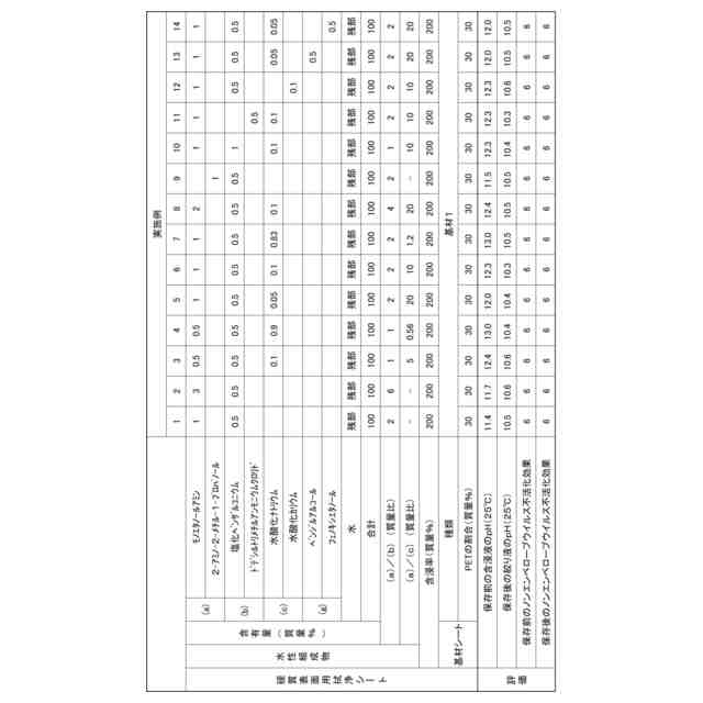 本発明において、ウイルスの不活化とは、ウイルスを死滅させる又はウイルスの感染性を失わせることであってよい。また、ウイルス不活化効果とは、ウイルスの一部若しくは全部を死滅させること、又はウイルスの感染力や毒性等の活性を失わせることをいう。