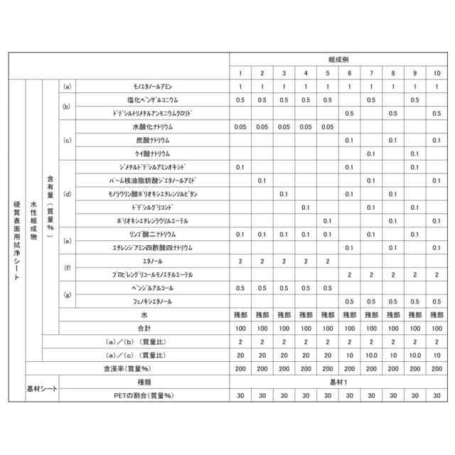 また水性組成物をアルカリ性にすることは硬質表面の油汚れ等に対する洗浄性を高める上で有効であるだけでなく、殺菌、抗菌及びウイルス不活化効果を上げるためには、不織布又は織布に含浸させる水性組成物をアルカリ性にする必要がある。しかしながら、アルカリ性の水性組成物を、ポリエステル系繊維を混紡した不織布又は織布に含浸させた拭浄シートは保存後の経時的変化により、該拭浄シートのウイルス不活化効果が低下することを、本発明者は発見した。