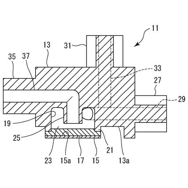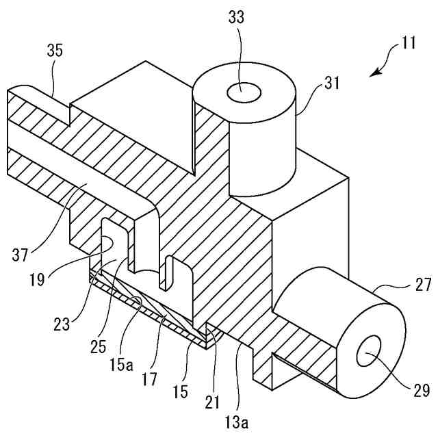一般的に、このような外部シール構造は、切削加工された部品同士を組み合わせて構成される。しかしながら、このような構造では、当接する面同士が加工誤差により僅かに歪んだだけでも、隙間が生じて流路内に滞留部が形成されてしまい、歩留まり悪化の原因となる。このため、例えば流路の一部に形成され且つ外部に開口する凹部を他の部材で閉鎖する場合、二つ部材の対向面の間にダイヤフラムやパッキンのような弾力性を有する部材を挟持することにより、隙間を生じることなく二つの部材の間をシールするようにすることが多い。また、ダイヤフラムのような部材を二つの部材の対向面の間に挟持できないような場合には、例えば特許文献1に記載の流量制御バルブのように、二つの部材の当接面同士を融点以上に加熱して溶着により一体化させる方法などが採用されることがある。