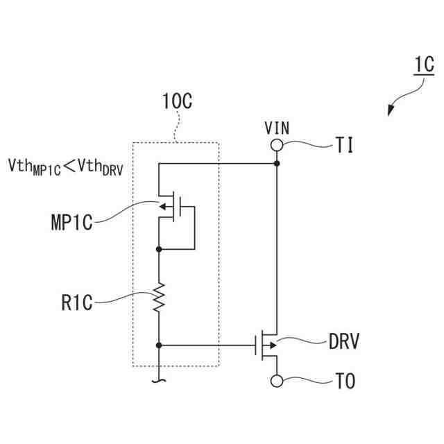 前記第1トランジスタのゲート電圧が閾値電圧付近であっても、前記入力端子から前記第2トランジスタへ電流を流すことができる電流調整回路と、を備える、