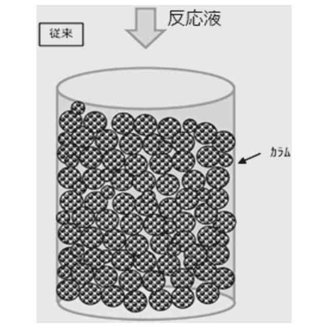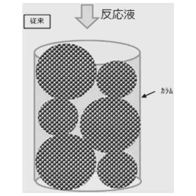 特許文献1に開示されたような粒子径の小さい(30μm程度)担体を連続式(カラム充填)で使用すると、圧損が高く、処理能力が低下するという課題があった。また、担体の粒子径を単に大きくしただけでは、担体内部に活性成分が担持されにくく、また、反応液が担体内部に十分浸透・拡散しにくくなるため、反応効率が悪いという課題があった。そこで、本発明の目的は、活性成分の性能をより効果的に発揮させることができる多孔質粒子を提供することにある。