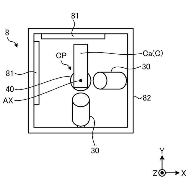 実施形態においては、部品実装装置1にローカル座標系を設定し、ローカル座標系を参照しながら各部の位置関係について説明する。ローカル座標系として、XYZ直交座標系を設定する。所定面内においてX軸に平行な方向をX軸方向とする。所定面内においてX軸と直交するY軸に平行な方向をY軸方向とする。X軸及びY軸のそれぞれと直交するZ軸に平行な方向をZ軸方向とする。X軸を中心とする回転方向又は傾斜方向をθX方向とする。Y軸を中心とする回転方向又は傾斜方向をθY方向とする。Z軸を中心とする回転方向又は傾斜方向をθZ方向とする。所定面は、XY平面である。Z軸は、所定面と直交する。実施形態において、所定面は、水平面に平行であることとする。Z軸方向は、鉛直方向(高さ方向)である。+Z方向(+Z側)は上方(上側)であり、-Z方向(-Z側)は下方(下側)である。なお、所定面が水平面に対して傾斜していてもよい。