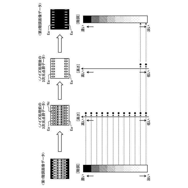 前記ノイズが除去された3次元点群データを第2階調画像データに変換し、