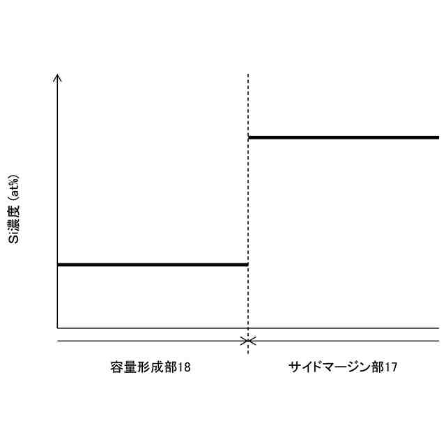 少なくとも前記容量形成部と前記一対のサイドマージン部との境界において、前記容量形成部から前記一対のサイドマージン部にかけてSi濃度が不連続に増加する