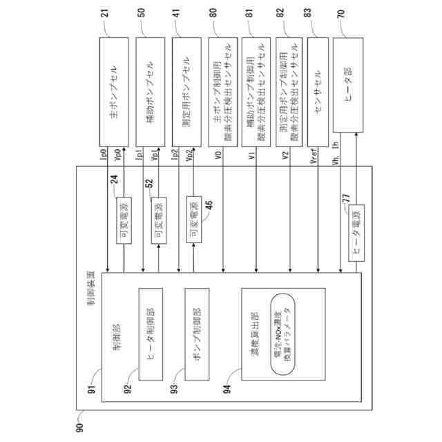 前記被測定ガス流通空所の前記第1内部空所内に配設された空所内酸素ポンプ電極と、前記基体部の前記被測定ガス流通空所とは異なる位置に配設された、前記空所内酸素ポンプ電極と対応している空所外酸素ポンプ電極とを含む酸素ポンプセルと、